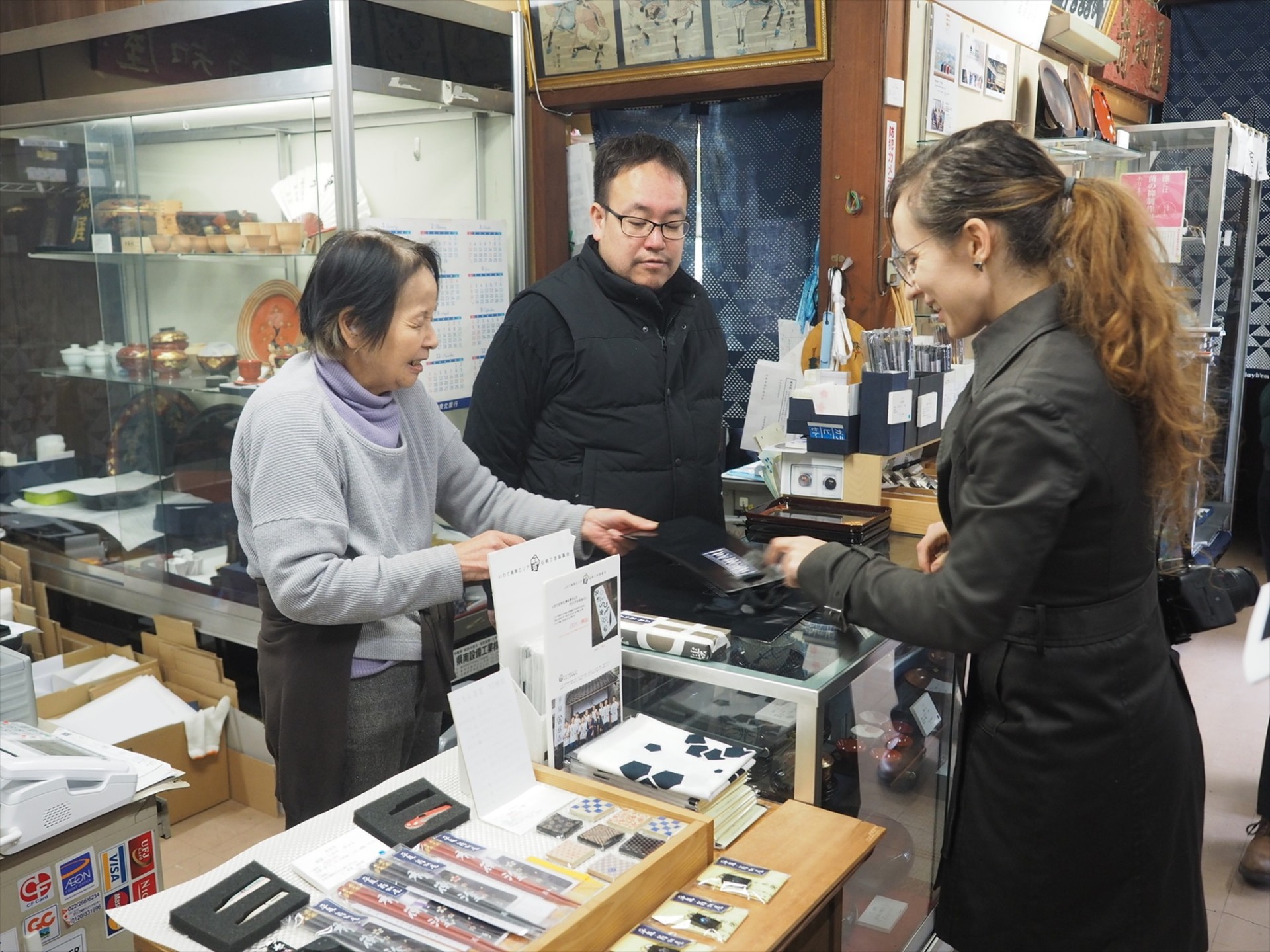 お腹もいっぱいになって、再び中尊寺の麓に戻ると、工芸品を始めとしたショッピングが楽しめる。特に興味深いのが「秀衡塗」。秀衡塗は実は藤原秀衡の時代から存在したものではなく、その時代から中山間地で連綿と続いてた木工や漆器加工を明治初期に「再解釈」し、昭和の初めに「再発掘」することで新たに創り出したものだということ。その数度のアウフヘーベン(止揚)を経て、現在に至る100年以上顧客のニーズやウォンツに応じて変化してきたダイナミズムが、秀衡塗の精神的な「伝統」なのかもしれない。秀衡塗は事前に予約すれば、中尊寺からほど近い翁知屋の「うるし塗体験工房 KURAS」で体験できる。