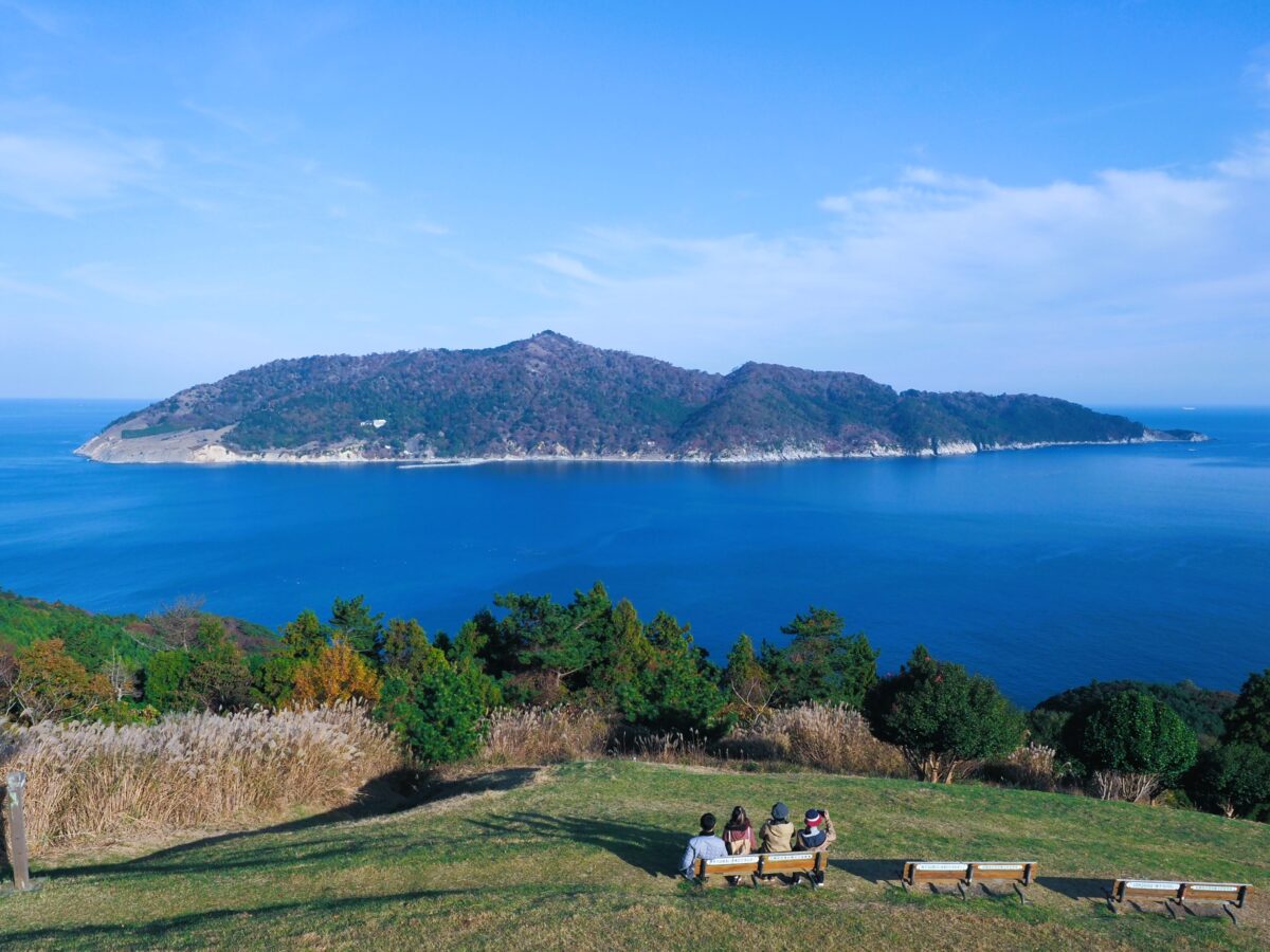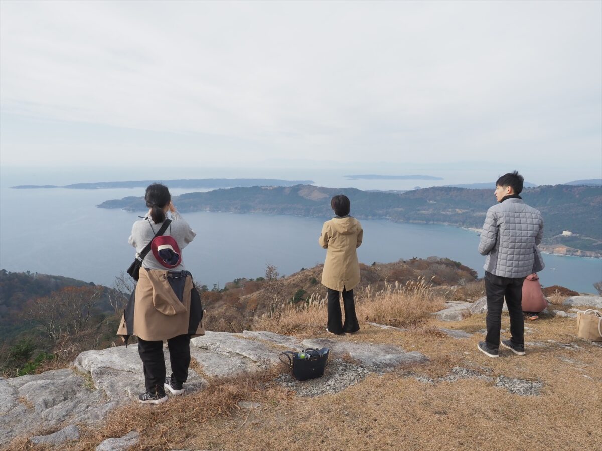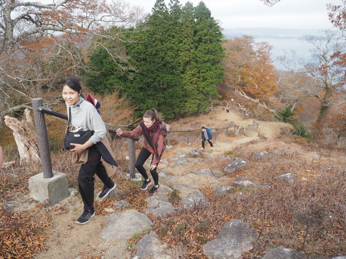 金華山は「山」なのか、「島」なのかと問われると、意外に答えが難しい。だが答えは「金華山=島=山」とすぐ解る。標高445mの山頂に向かう一時間の道のすがらでは平地もほとんどなく、海と島と山は一体だ。日頃の運動不足の体には堪えるが、山道の急峻な部分には階段や手すりが整備されており、楽しいハイキングとなるだろう。