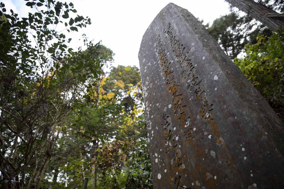 黄金山神社境内にある歌碑。聖武天皇とともに産出の喜びを詠う大伴家持の万葉歌を刻んでおり、「小田郡(涌谷町)にある山」で産出した「金」が、はるか奈良の都に運ばれ国家的な慶事となったことが詠み込まれています。「みちのくの金」を象徴する歌碑となっています。