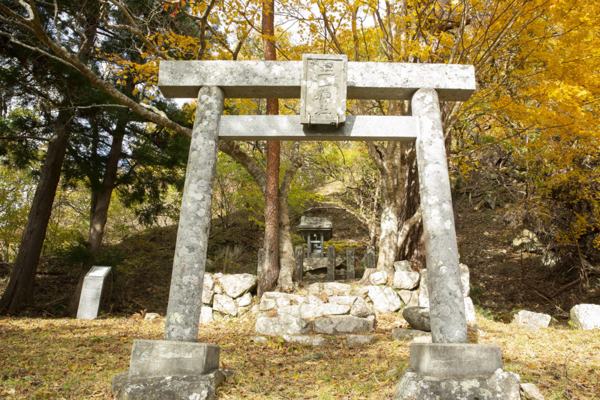 竹駒神社と共に金山の守護神として勧請された神社。奥州藤原氏や伊達氏が深く信仰しました。境内周辺は金鉱石や水晶化した鉱石が露出しており、当時の佇まいを今に伝えています。
